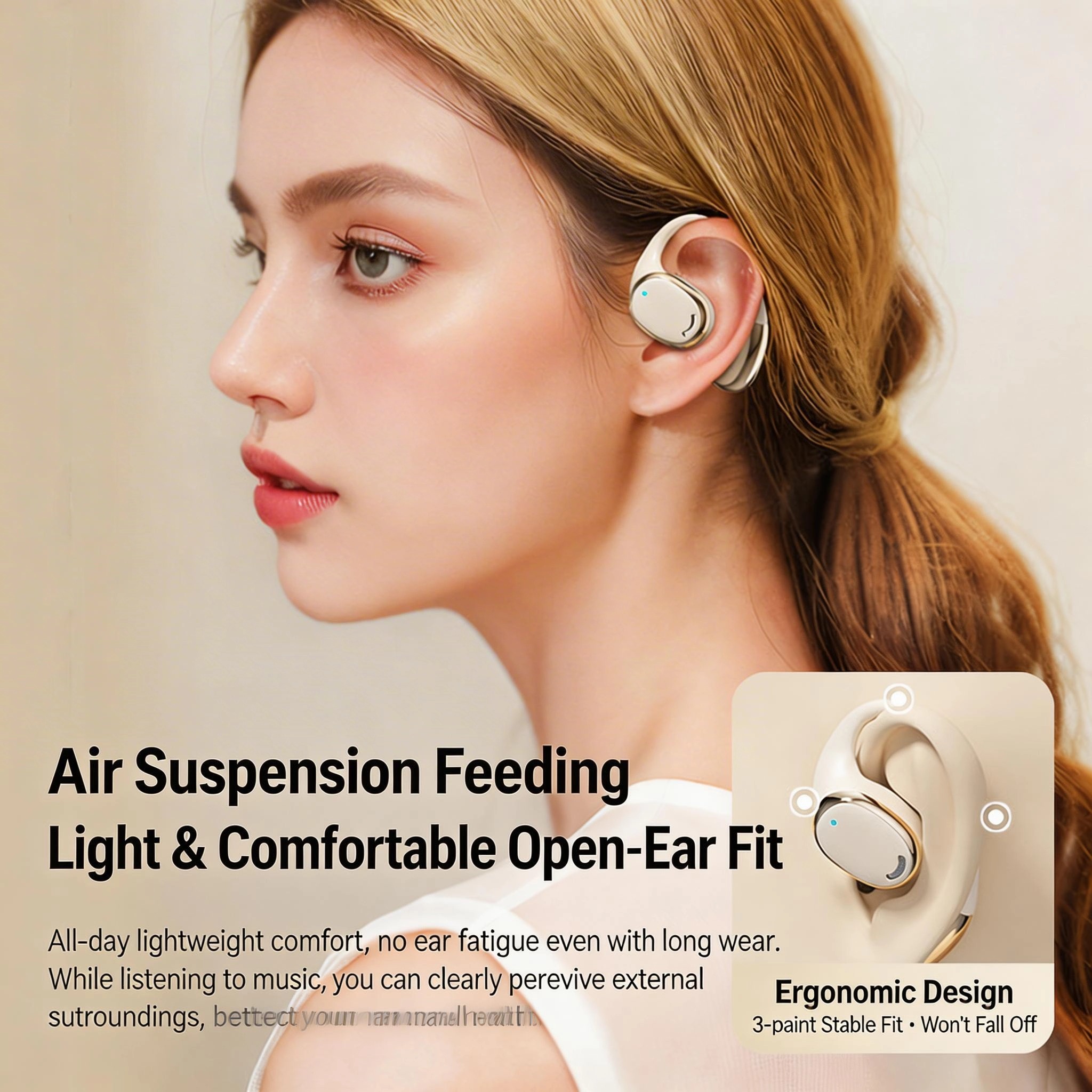 Wireless, high - quality sound, long - lasting battery life, non - in - ear design, comfortable for long - time wearing, and ear - hanging style